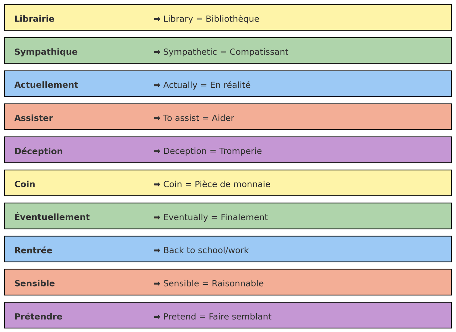 Dans cet article, nous allons découvrir quelques-uns des faux amis les plus célèbres, comprendre leurs véritables significations et éviter les erreurs de traduction les plus courantes.
